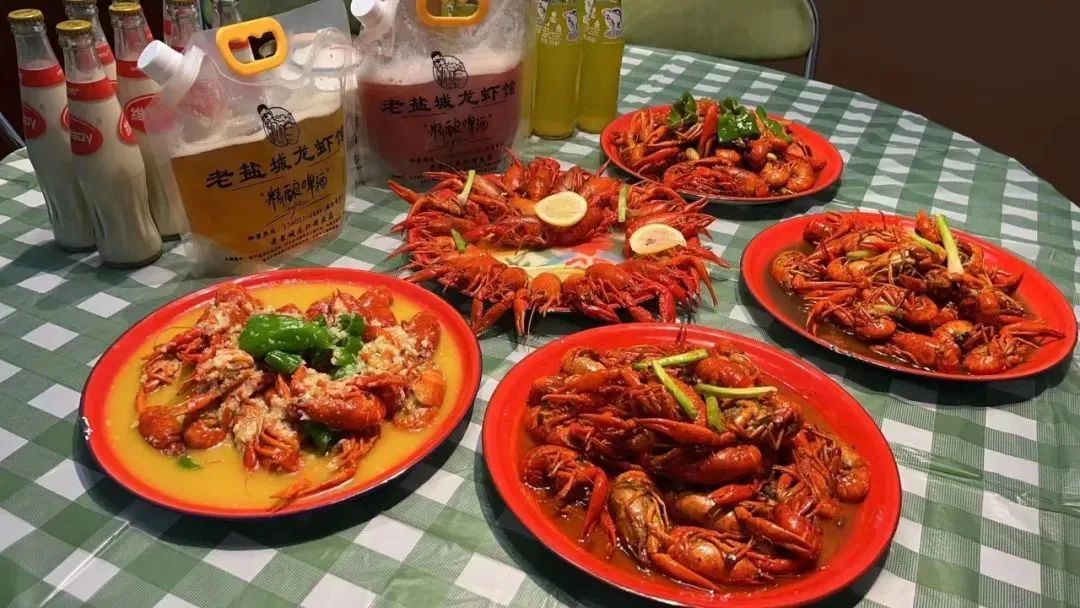 老盐城龙虾馆入驻竹林一年,店内装修朴素、格调别致,缝纫机、收音机、小闹钟、搪瓷碗,还有大厅内挂着的老盐城照片……这些烙印着上世纪七八十年代痕迹的物品,让人不经意间穿越回上世纪七八十年代的老盐城。