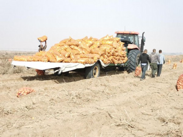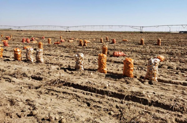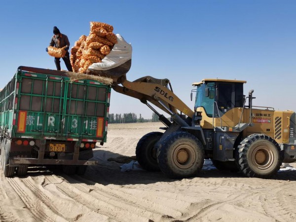 种植大户正在装载沙漠土豆。(新华社记者李云平 摄)