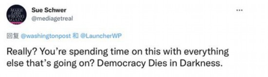 有人评论称:“真的吗?其他事情还在发生,你却把时间花在这些事上面?”并引用《华盛顿邮报》的口号说,“民主在黑暗中消亡”。这名推特用户并没有写明文中的“你”指代的是拜登还是《华盛顿邮报》。