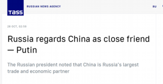 据塔斯社报道,俄罗斯总统普京当地时间10月27日参加瓦尔代论坛并发表讲话时表示,俄罗斯视中国为亲密的朋友,对中国的传统和文化充满尊重。