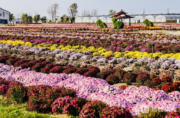 盐城市射阳县洋马镇是闻名全国的中药材之乡,引种菊花已有六十多年历史,全镇域种植菊花面积达3.5万亩,是全国最大的药用白菊花产地、江苏省菊花营销集散地。鹤乡菊海现代农业产业园是全国最大的菊花生产基地、华东最大的药材种植基地。