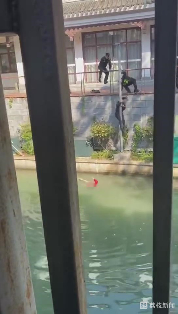 在接到市民报警称有一名女子落水后,南京秦淮公安分局夫子庙警务站的辅警以最快速度赶到现场,通过一个杆子速降到岸边,在60秒之内将女子救上岸。救人的现场,也被市民用手机记录了下来。今天(10月28日)上午,南京秦淮警方通报了这起警情。