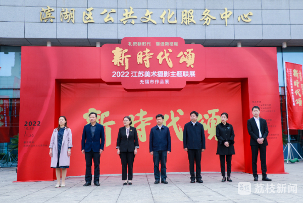 为更好扛起“争当表率、争做示范、走在前列”光荣使命、谱写“强富美高”新无锡,昨天(10月28日),“新时代颂”2022江苏美术摄影主题联展无锡作品展在无锡市滨湖区文化馆揭幕,市、区领导及协会代表出席开幕式并观展。