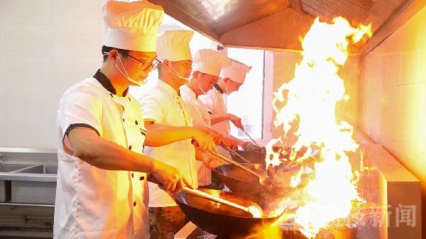 炊事比武现场,从切菜配料到挥铲翻炒,5名炊事员分工有序、忙而不乱,在1小时内做好了200名官兵的饭菜,用精湛的厨艺诠释着“后勤保障就是战斗力”。