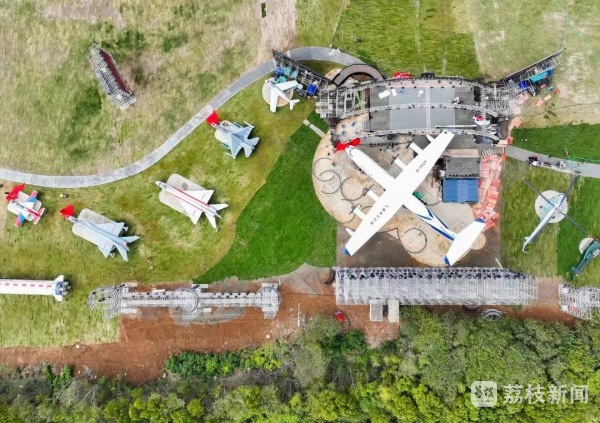 记者在现场了解到,“御风园”东界机场高速,西濒南航砚湖,占地面积约3万平方米。园中入驻有新中国自行生产的第一型飞机初教5、抗美援朝的米格-15战斗机、K-8基础教练机、我国自行设计制造的歼8和歼-8Ⅱ歼击机、全天候轻型多用途FC-1双座战斗机、大型水陆两用飞机AG600静力试验机、长征四号运载火箭、学校研制的大型无人靶机长空一号等19台航空航天器,由空军、航空工业、中国航天、民航等方面惠予提供,集中展示了我国航空航天事业的发展成就。将作为学校航空航天教育教学实践基地用于大型实物现场教学。