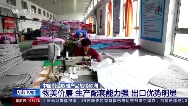 除了电热毯,取暖器和热泵也成为众多欧洲家庭冬季取暖的新选择。浙江慈溪、广东顺德等地的家电企业,相继迎来订单潮。记者在浙江慈溪一家取暖器生产企业看到,4条生产线上,一台台取暖器正在进行最后的组装以及装箱。宁波慈溪海关数据显示,今年1月份至8月份,慈溪取暖器出口33.5亿元,同比增长26.3%,其中出口欧盟15.3亿元,同比增长55.2%。
