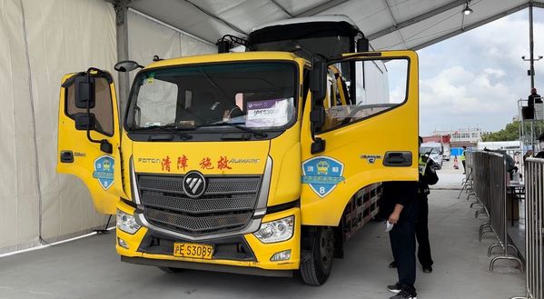 同时针对少数超长车辆无法进入场内的情况,第八责任区成立场外安检小组,在初检核酸符合要求的情况下,在明珠路徐德路设立临时查验点,对此类布展车辆进行场外安检,避免发生搁浅场内的情况,确保顺利安检、按时进场布展。