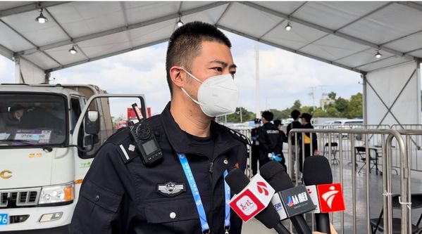 整个远端安检区域分为等候区、安检区和静止区。在安检区记者看到工作人员正在对每一辆入场车辆进行安检,现场设置“人梯”和车底镜设备,全程监控,闭环管理,当车辆进入安检区域后,先由高台处的工作人员站守执勤,负责检查通过货车车顶是否有安全问题,然后通过移动式车底安全检查系统检查车底,除此之外,人工车底镜会继续对车底进行扫描,搜爆犬也会加入,负责搜爆。“这几天都是搭载展品的车辆,很多都是易碎物品。对此我们也专门提醒现场工作人员要注意防范,特别是车辆引导人员,更加要确保车辆入场期间的安全。”史正一如是介绍到。
