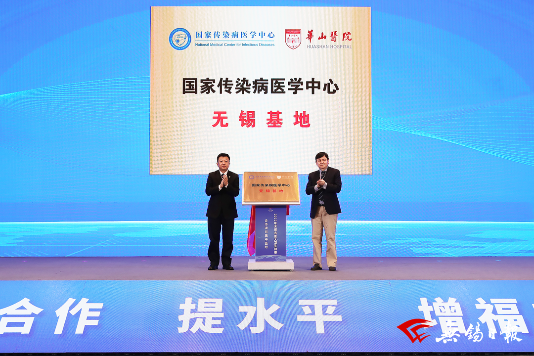 市委书记杜小刚为“国家传染病医学中心无锡基地”揭牌。