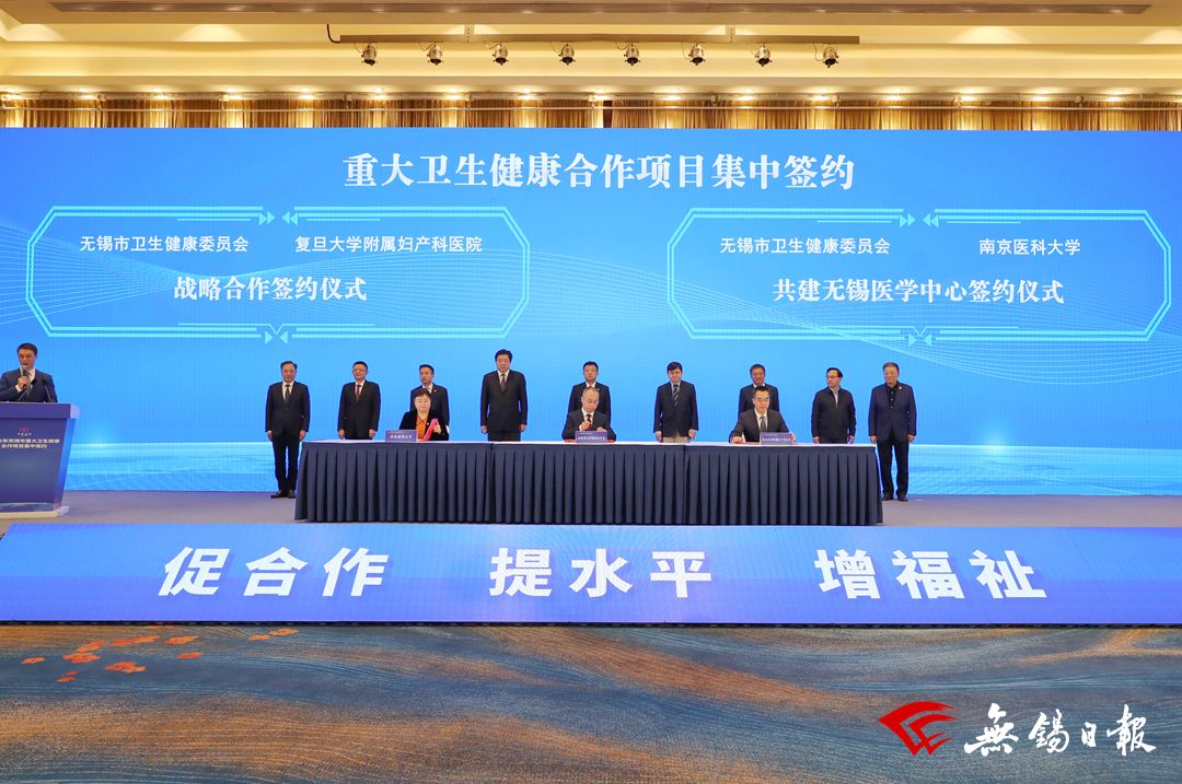 活动现场,我市与上海中医药大学签订市校战略合作协议,市卫生健康委与复旦大学附属妇产科医院(上海市红房子妇产科医院)签订战略合作协议、与南京医科大学签约共建无锡医学中心。