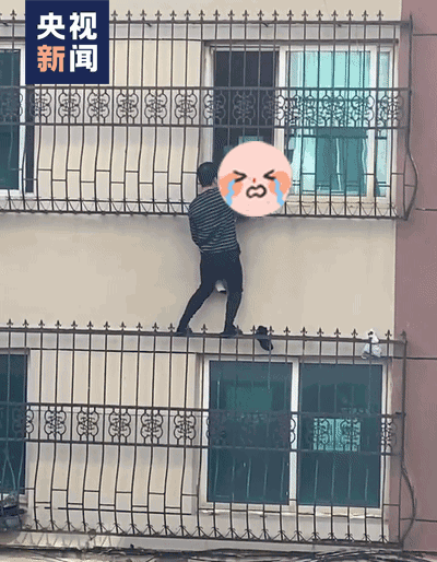 悬空卡在防盗窗,孩子吓得大哭