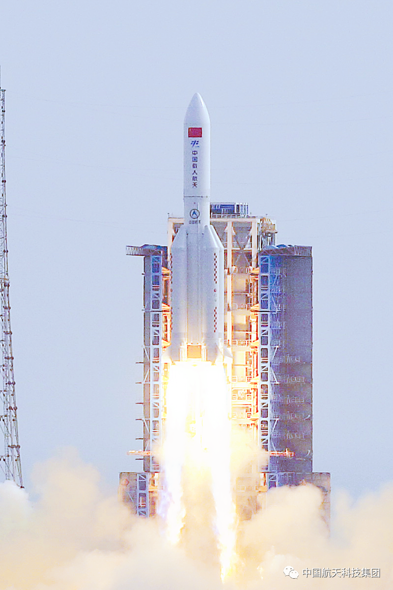 ▲ 研制团队部分成员与长五B火箭合影(宿东 摄)