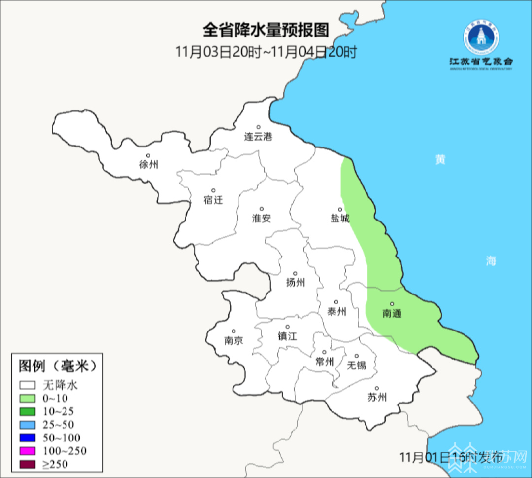 但11月3日中午前后,会有一股中等强度冷空气自北向南影响江苏省。届时会有4-7℃的降温,江苏的东部地区会出现小雨。气象部门提醒大家:及时增加衣物,带好雨具。