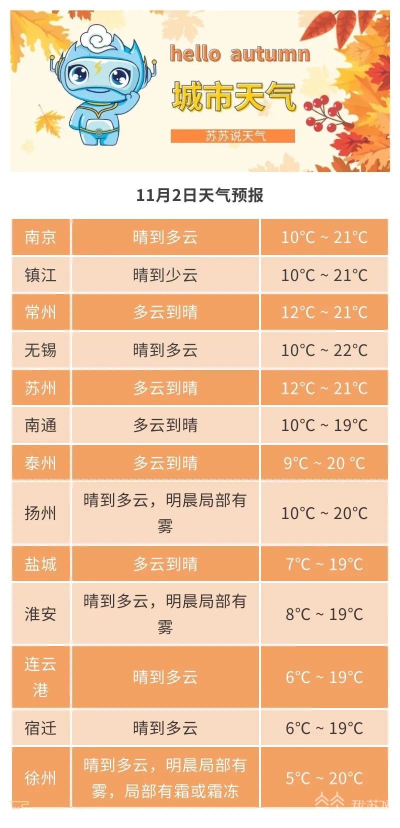 未来三天江苏全省以多云天气为主,阳光正好,微风不燥。抓紧时间,出门欣赏一下绚烂多彩的秋色吧。