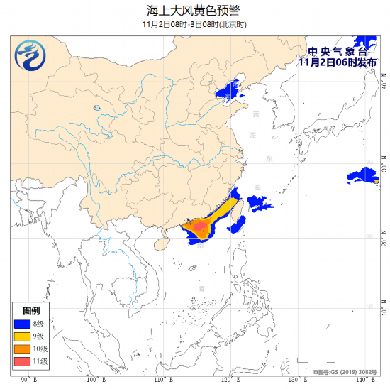 中央气象台11月2日06时继续发布海上大风黄色预警: