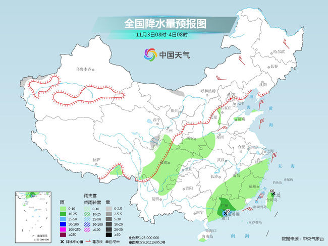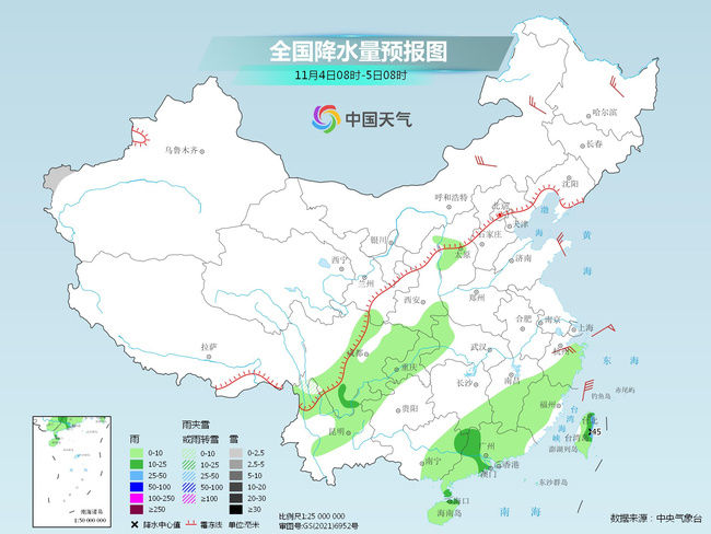 明天,华南降水有所减弱。预计,新疆南疆西部山区等地部分地区有小雪,陕西南部、山西中部、四川盆地大部、云南中北部、浙江中南部、江西中南部、湖南南部、华南大部、海南岛、台湾岛等地部分地区有小到中雨,其中,台湾岛东北部局地有大雨。