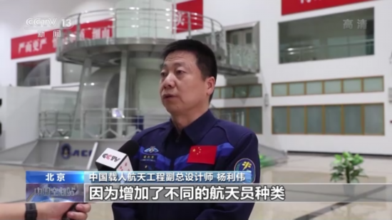 中国载人航天工程副总设计师 杨利伟:这次制定了很多新标准。从生理标准上来讲,因为增加了不同的航天员种类,这是有调整的,有一些比以前要稍稍放一放。比如载荷专家,从视力这个角度来讲,比驾驶员要稍稍宽松一点,但从知识结构上来讲,是越来越严了,比如对工程师、载荷专家的学历要求、工作经历,要求是越来越高了。