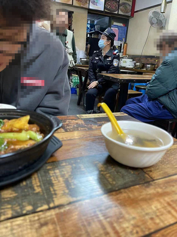 在老人用餐期间,民警一直陪在身边 ,并关切地询问老人具体情况。当饭店工作人员听闻老人长期一人独居,腿脚不方便时,当即也围了上来问老人是否还有其它需要帮忙的。饭店工作人员蓄先生称,“就听到民警问老人家里有没有什么困难,还有什么要帮忙,就觉得很暖心,我们就说这顿饭的钱不要了,就尽一份力吧”。