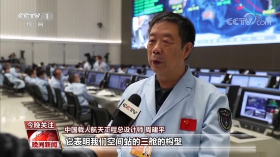 中国载人航天工程总设计师 周建平:这是一个很重要的标志性事件,它表明我们空间站的三舱的构型已经完全到位。