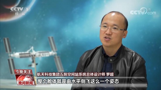 航天科技集团五院空间站系统总体设计师 罗超:整个舱体就是由水平倒飞这么一个姿态,变成一个竖起来的重力梯度姿态,具体的就是核心舱头冲上,顶着梦天舱朝上,货运飞船在底下,整个飞行方向是朝着前边,推着问天实验舱在飞,这么一个飞行姿态。