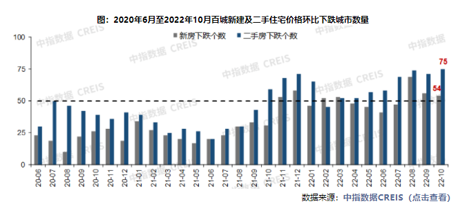 扬子晚报网11月3日讯(记者 马祚波)来自中指研究院发布的《百城价格指数报告》中指出,在刚刚过去的10月份,新房及二手房价格环比均下跌的城市数量增至46个,近半数城市的房价面临调整压力,预计今年末“因城施策”将继续发力。