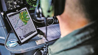 美空军国民警卫队人员使用电子设备追踪飓风。