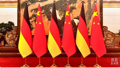 △会谈现场摆放的中德两国国旗。(总台央视记者黎兵拍摄)