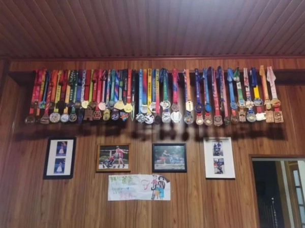 罗书坚家中挂满墙壁的奖牌(受访者提供)