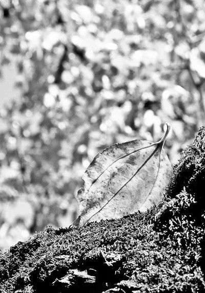 江苏苏州怡园内,一片树叶飘落在树干上。新华社发