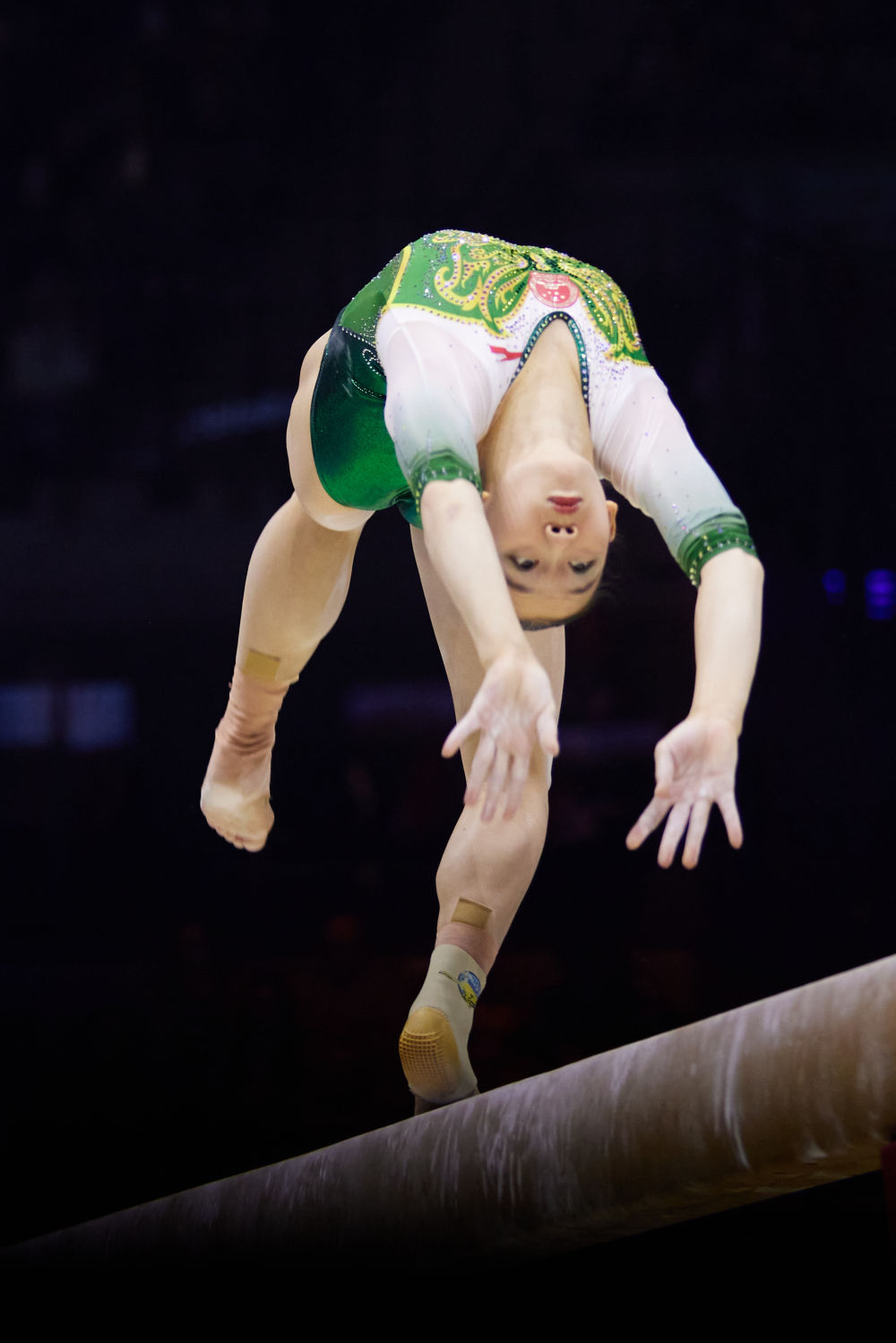 女子平衡木决赛中,中国选手欧钰珊以资格赛第一的身份出战。但脚伤限制了她的发挥,比赛过程中出现掉木,最终以13.000分的成绩排在八名决赛选手的第六位。日本选手渡边叶月以13.600分获得金牌,加拿大选手伊丽莎白·布莱克以0.034分之差位居第二,另一位日本选手宫田笙子以13.533分排名第三。