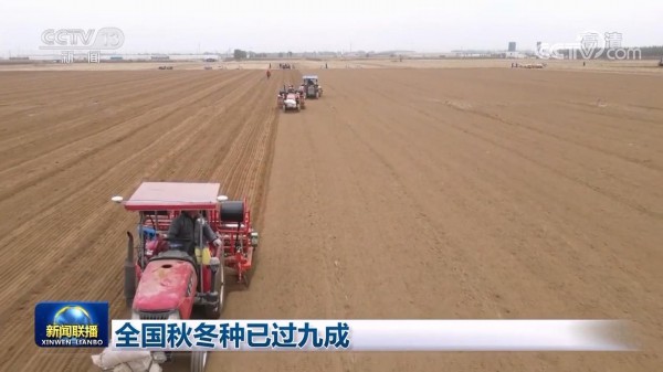 央视网消息(新闻联播):农业农村部最新农情调度显示,全国冬小麦、冬油菜播种面积已过九成。今年各地积极推广良种良法,不断提升秋冬种质量。