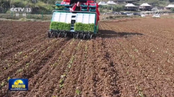 在贵州遵义,这种新型油菜移栽机每分钟最高可移栽油菜1680株,一次下田就能完成旋耕、灭茬、开沟、对缝栽插等多道工序。