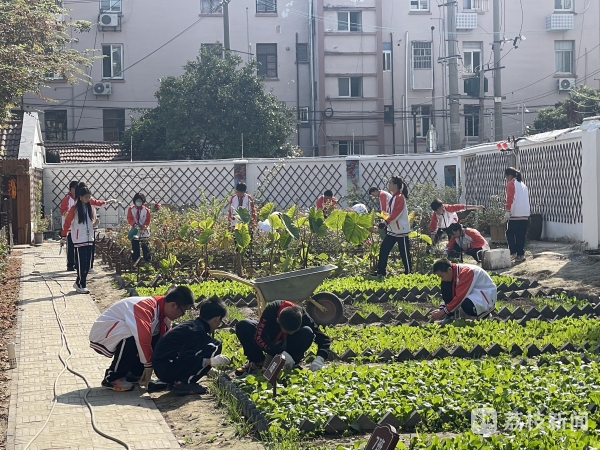 这节劳动课是启秀中学开发的新课程,备受学生欢迎。根据教育部《义务教育劳动课程标准(2022年版)》相关要求,从今年秋季学期开始,劳动要从原来的综合实践活动课程中独立出来。启秀中学因地制宜,开设劳动必修课,目前已探索“分田到班”“多元融合”“自育自立”等劳动教学实践,打造现实版“百草园”。