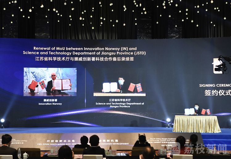 大会开幕式上还举行了云签约仪式,江苏省科技厅厅长王秦与挪威创新署中国区负责人、挪威驻华大使馆商务参赞安若夫代表双方机构续签科技合作备忘录,双方继续实施产业研发合作共同资助计划。