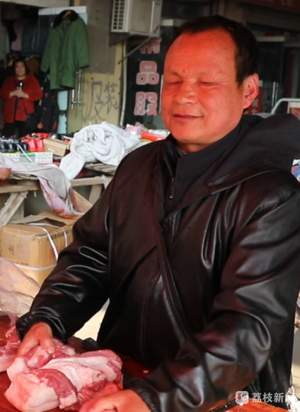11月9日上午,彭志安的肉摊前,围了不少人。“老彭最近火了,给他招揽了不少生意。”桑墟镇居民乔壮告诉记者,其实彭志安的肉摊生意一直很好,由于为人实在,口碑很好,当地居民都很喜欢他,非常愿意到他这里采购猪肉。