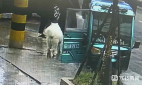 扬州市邗江交警大队方巷中队副中队长陈立建说:“电动三轮车下来两个人,一男一女,还有一条白色的狗,应该是萨摩耶。”