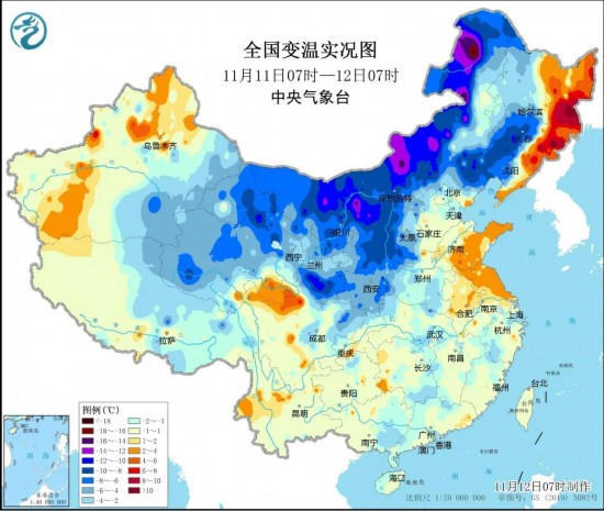 今晨,内蒙古、甘肃、宁夏、陕西、山西、辽宁西部、吉林西部等地已出现显著降温,内蒙古局地降温幅度达12 ℃至15 ℃。