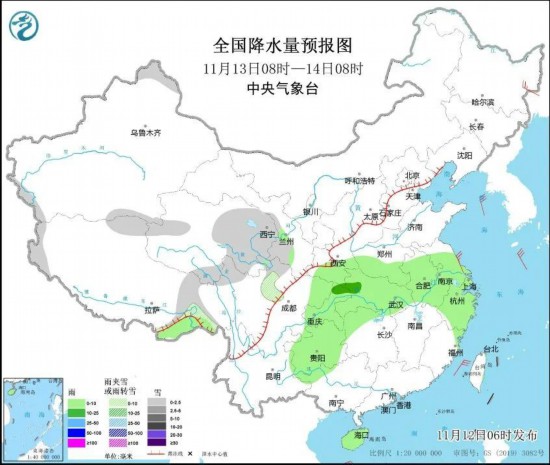 中央气象台预计,13日至14日,新疆北部、青海东部、西藏东部等地部分地区有小到中雪或雨夹雪。陕西南部、贵州、江汉、四川盆地东部、江淮、江南北部和东部等地部分地区有小到中雨。