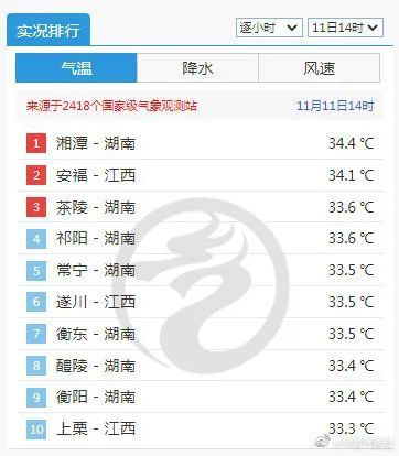昨日,我国江南、华南等地气温较高,湖南、江西部分地区的气温逼近35℃,恍如夏日。湖南、江西等地有60个以上的国家气象观测站点气温突破11月同期历史高温极值。