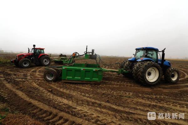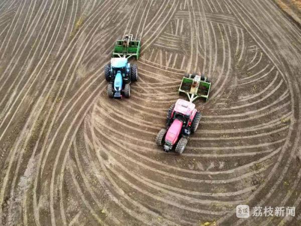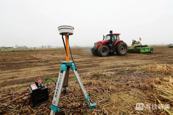 11月10日,在盐城市大丰区草堰镇水稻收割后的大田里,机声隆隆,一台台卫星铲运平田机在田间“奔跑”,将原有高低不平的土地全部“抹平”。