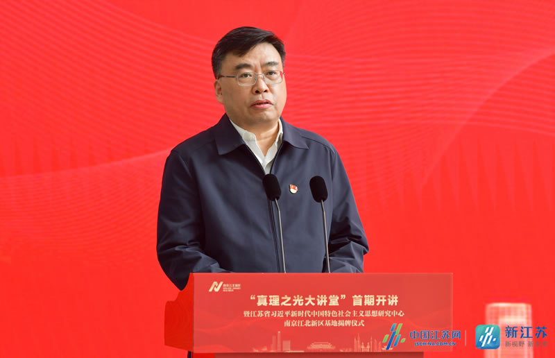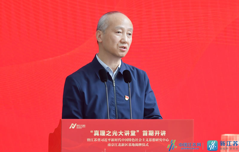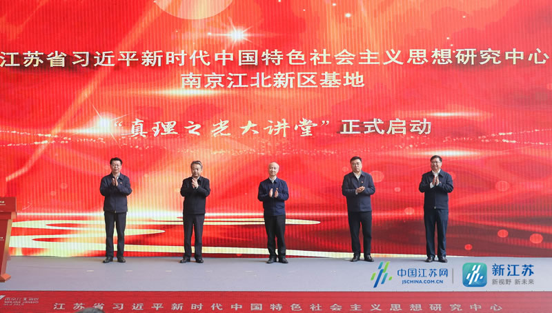 新江苏·中国江苏网讯(通讯员 袁征 史一平 记者 丁小玲) 为深入学习宣传贯彻党的二十大精神,切实用党的创新理论武装头脑、指导实践、推动工作,11月12日上午,“真理之光大讲堂”首期开讲暨江苏省习近平新时代中国特色社会主义思想研究中心南京江北新区实践调研基地揭牌仪式,在南京江北新区市民中心举行。南京江北新区基地是党的二十大以来,全省首个揭牌的实践调研基地。