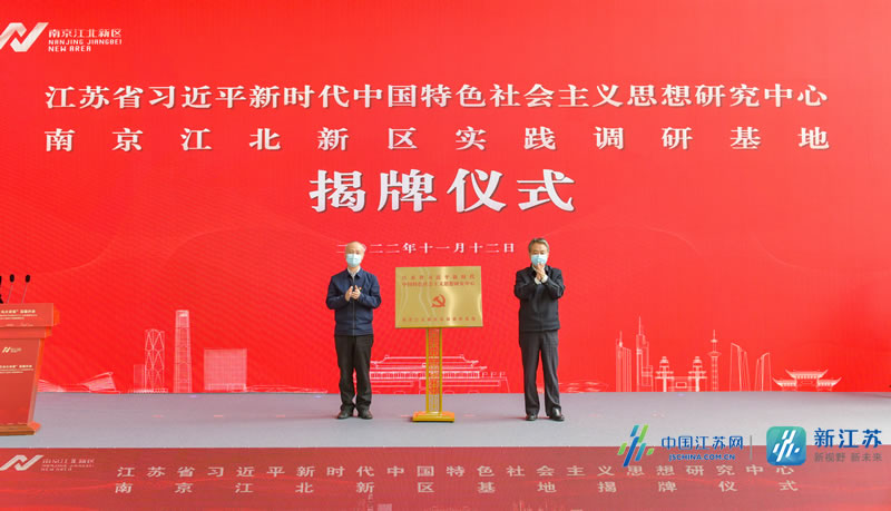 本次活动由江苏省习近平新时代中国特色社会主义思想研究中心指导,中共南京市委宣传部、中共南京江北新区工作委员会主办。江苏省委宣传部副部长、江苏省习近平新时代中国特色社会主义思想研究中心副主任赵金松,南京市委常委、宣传部部长陈勇,共同为江苏省习近平新时代中国特色社会主义思想研究中心南京江北新区实践调研基地揭牌。