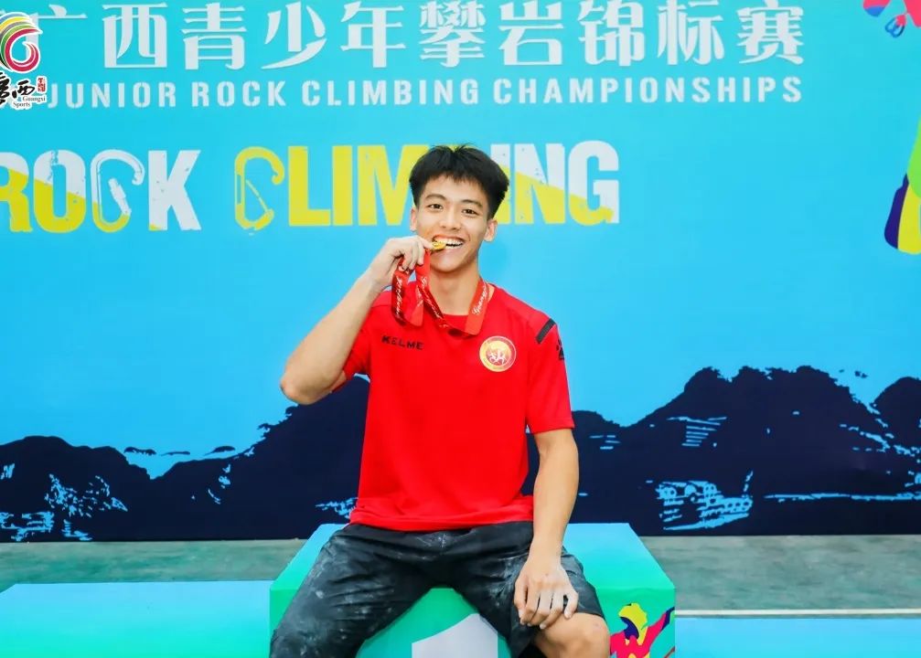 图为国少队成员零勇志在一次比赛中获得金牌。