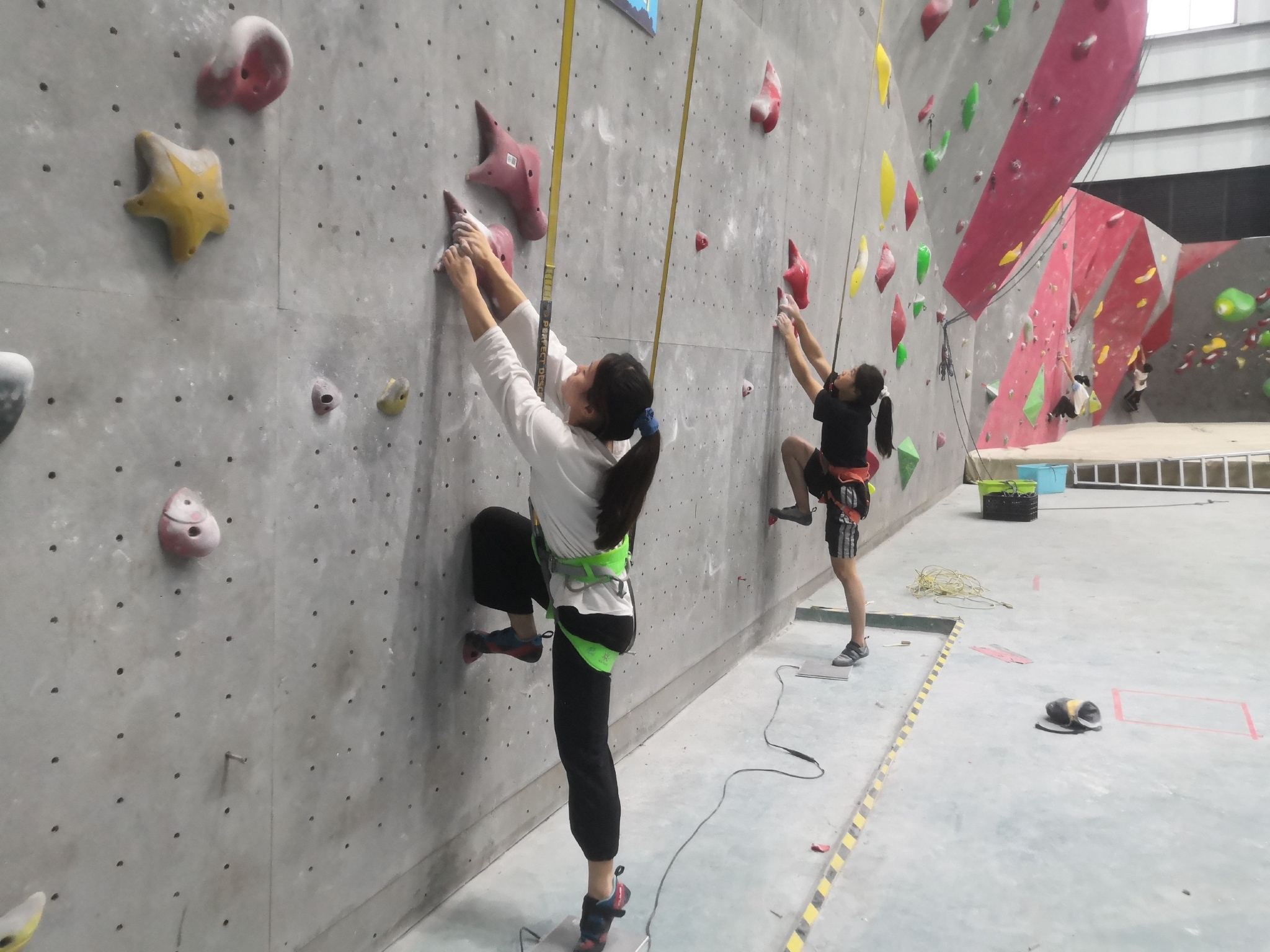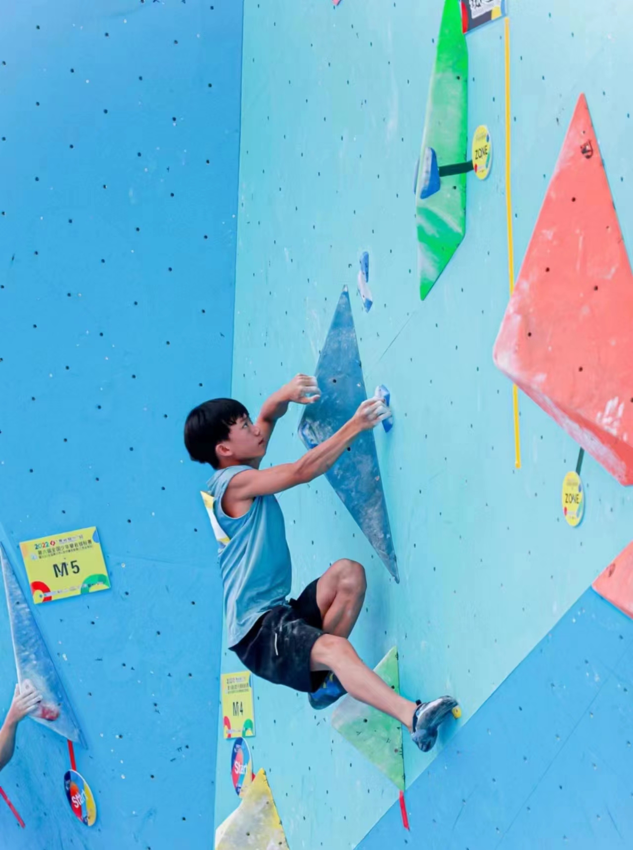 图为马山县古零镇初级中学学生在一场攀岩比赛中。