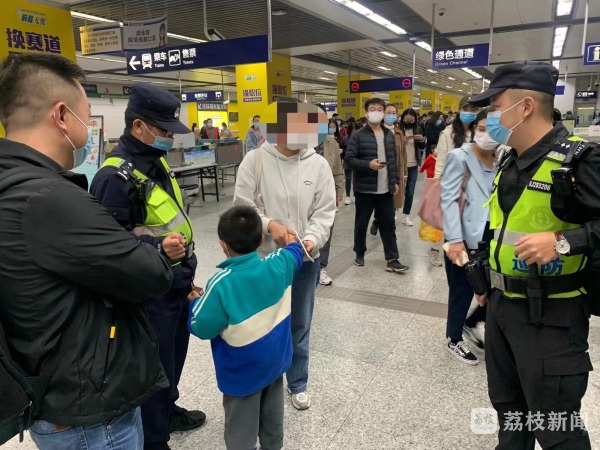 11月8日17点15分左右,就有一位母亲焦急地向南京站民警求助,称自己去趟卫生间的功夫,5岁的儿子就不见了。民警闻讯立即联系沿线警力协同寻找,不一会儿,便接到了小朋友报平安的电话。原来,一名热心男乘客看到小朋友独自上车,身边没有大人陪伴,出于安全考虑,便主动上前询问救助,不仅帮孩子辗转联系了家人,还将他安安全全地带到了柳州东路站民警身边,直至二人母子团圆。
