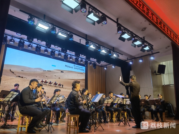南京敦善青年交响管乐团由《莫高窟-千年的祈祷》拉开了音乐会的帷幕。萨克斯协奏曲《草原夜色美》让观众对美丽的草原产生了无尽的向往,在演奏完两首中国作品之后,两首国外作品《俄勒冈》《第二圆舞曲》等极具地域特色的经典管乐作品也逐一呈现;《幸福的格物》表现了国家富强,百姓安居乐业的美好生活。