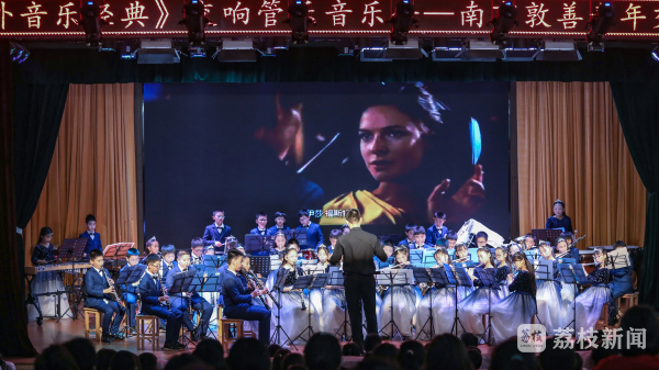 由江苏省教育厅、江苏省财政厅主办,江苏省学校美育指导委员会高雅艺术进校园拓展中心承办,南京敦善青年交响管乐团出演的“2022年江苏省高雅艺术进校园活动拓展项目——《中外音乐经典》交响管乐音乐会今天在南京市江北新区浦口实验小学迎江路校区继续开演。