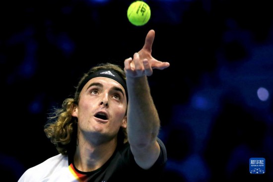 11月14日,齐齐帕斯在比赛中发球。新华社发