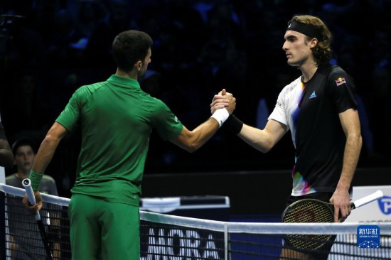 11月14日,焦科维奇(左)和齐齐帕斯在比赛结束后握手致意。新华社发