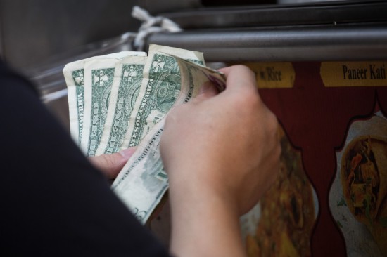 9月13日,在美国纽约,顾客准备购买食物。新华社发(郭克摄)